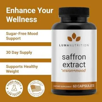 Luma Nutrition Saffron Extract Capsules - Premium Saffron Supplements - 88.50 mg Pure Saffron Pills - Mood Support - Eye Support - Made in The USA - 60 Capsules