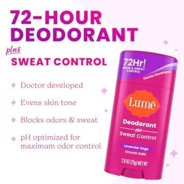 Lume provides up to 72 hours of odor and sweat control.