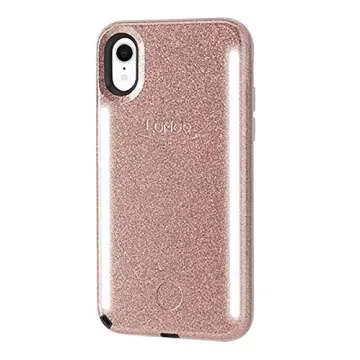 LuMee Duo Phone Case, Rose Glitter | Front & Back LED Lighting, Variable Dimmer | Shock Absorption, Bumper Case, Selfie Phone Case | iPhone XR Only