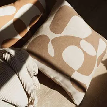 Lumi Living 100% Cotton Knitted Soft Throw Pillow Cover Modern Abstract Shape 18x18 (Light Beige & Mocha)