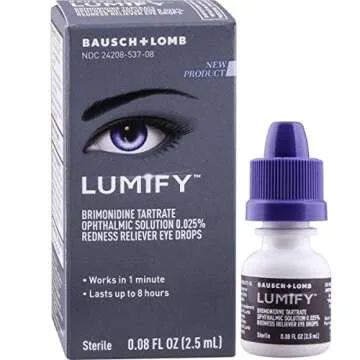 Show moreDiscover the ultimate solution for eye redness with Lumify Eye Drops from Bausch + Lomb. This pack of 6 ensures you're always prepared with a product that not only moisturizes your eyes but also removes redness in about 10 seconds. Perfect for those who demand quick, effective relief, Lumify stands out for its fast-acting formula and the trustworthiness of the Bausch + Lomb brand. Whether it's due to long hours in front of screens, allergies, or fatigue, these eye drops are your go-to for bright, refreshed eyes anytime, anywhere.