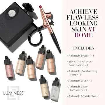 Luminess Air Basic Airbrush Makeup Kit and 9-Piece Silk 4-In-1 Airbrush Foundation Starter System, Medium Coverage - Quick, Easy and Long Lasting Application - Includes Primer, Blush and Glow