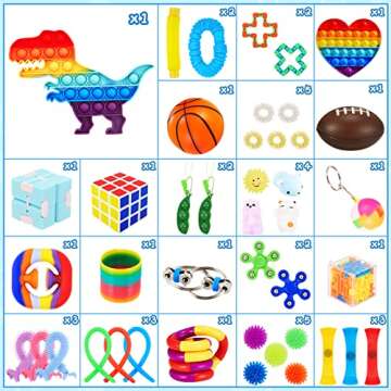 - Comprehensive Variety: The 43-piece set features everything from 2 silicone bubble poppers and assorted sensory balls to unique toys like an infinity cube and squeeze foam football.
