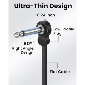 Introducing the **LuminologyPro 6 Pack Guitar Patch Cables** - your ideal solution for creating a seamless and tidy pedalboard setup. Measuring just 5 inches, these ultra-low profile cables feature innovative right-angle plugs, allowing for exceptionally tight connections between pedals without cluttering your space. The slim design, with a thickness of only 0.24 inches (6.1 mm), gives you the versatility to arrange your gear in any configuration while ensuring that each connection is secure and stable. Crafted...