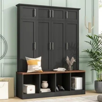 LUMISOL Wide Entryway Hall Tree with Bench and 8 Cabinets, Elegant Storage Solution for Living Room and Mudroom