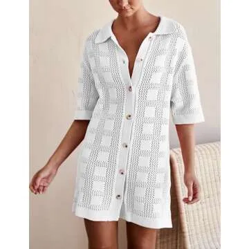 Lumister Summer Knit Shirt Dress for Women - Crochet Button Front Cover Up