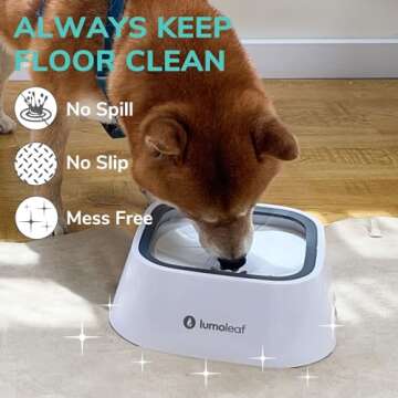 Show moreMeet the LumoLeaf No Spill Water Bowl – the ultimate solution for pet owners seeking a practical and efficient way to provide clean, mess-free hydration for their beloved furry friends. Designed for large dogs and messy drinkers, this innovative bowl features a capacity of 135oz (4L), ensuring that your pets stay hydrated without the fuss. The unique floating disk mechanism not only keeps water at the perfect level for drinking but also prevents splashes and spills, making it ideal for multi-dog households where mess is a common concern. Crafted with an anti-slip base, the bowl remains in place even during enthusiastic drinking sessions. Easy to clean and dishwasher safe, the LumoLeaf bowl combines functionality with convenience, ensuring both you and your pets enjoy every sip without the hassle of constant clean-up.