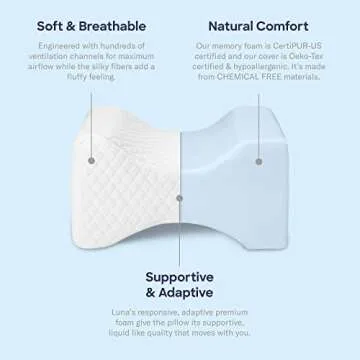 Why You'll Love This Product: Embrace the freedom of restful sleep that the Luna Orthopedic Knee Pillow brings to your life. Imagine waking up refreshed, pain-free, and ready to take on the day without the limitations of discomfort. This pillow is not only about physical comfort but also about enhancing your overall quality of life. Enjoy the peace of mind that comes with your health and well-being, wrapped in the luxurious feel of adaptable memory foam.
