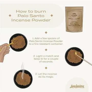 Luna Sundara Palo Santo Incense Powder from 100% Wild Peruvian Palo Santo 4oz Sustainably Palo Santo Wood Powder for Smudging and Homemade Incense (Powder of Palo Santo (Bursera Graveolens Wood))