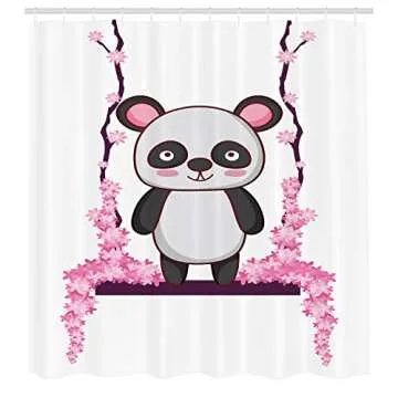 Show moreTransform your bathroom into a whimsical oasis with the Lunarable Panda Shower Curtain, featuring an enchanting design that showcases an adorable Asian bear lounging on a flower hammock, surrounded by beautiful pink-toned flowers. With dimensions of 69 inches wide by 75 inches long, this shower curtain provides generous coverage while sprucing up your bathroom decor. Crafted from high-quality 100% polyester Turkish fabric, it is both water-resistant and completely free from vinyl and PEVA, ensuring a safe and stylish addition to your home. Plus, the curtain comes with 12 hooks for easy installation, making it a breeze to set up and maintain.