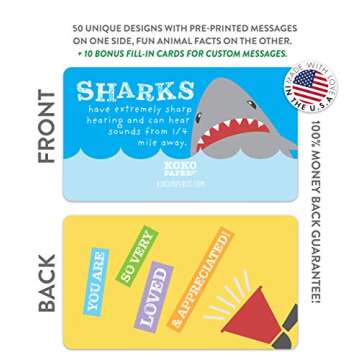 Lunch Notes for Kids with Fun Animal Facts | Pack of 60 | Rounded Corners for Safety