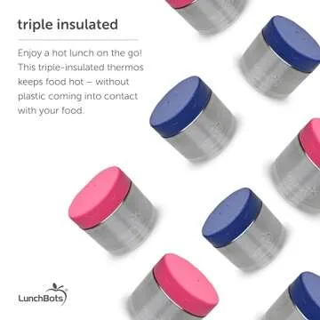 Show more Introducing the revolutionary thermal food container from LunchBots, designed with triple-insulated thermal technology to keep your meals fresh and at the perfect temperature. Whether you're packing a hot delicious soup or a cold refreshing salad, this innovative product excels in maintaining temperature—keeping cold foods chilly for up to 12 hours and hot meals steaming for over 6 hours. Say goodbye to soggy lunches and embrace reliable temperature control!