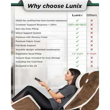 Unlike other bed wedge pillows that are often too firm or uncomfortable, Lunix stands out for its thoughtful design and user-friendly features. While many competitors lack an adjustable feature or use low-quality materials, the LX5 set is made of premium memory foam that ensures optimal support without sacrificing comfort. The innovative Velcro strap keeps the pillows securely in place, while included therapy packs add an extra level of customization that is often overlooked in similar products. With extensive testing and positive feedback from over 500 volunteers, Lunix reaffirms its commitment to delivering exceptional quality that surpasses the competition.