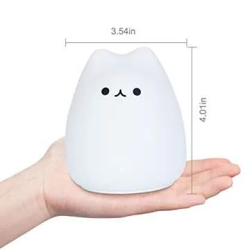 LUNSY Cat Night Light, LED Cute Silicone cat lamp with Color Changing Tap Control Battery Operated for Kids Baby Girl Children Toddler.