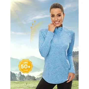 LURANEE Womens UPF 50+ Long Sleeve 1/4 Zip Pullover Athletic Hiking Running Workout Tops