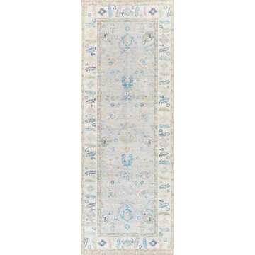 Show moreIntroducing the **Luria Rugs Machine Washable 2'7" x 12' Non-Slip Runner Rug**, a perfect blend of style, functionality, and safety, designed to elevate your home decor while ensuring practicality for high-traffic spaces. This exquisite runner rug belongs to the **Aria Collection**, showcasing a stunning vintage Oushak floral design reminiscent of classic elegance. Crafted in Turkey, it features a soft palette of **boho blues, ivory, beige, light green,** and **dusty rose** that brings a touch of sophistication to any hallway, entryway, or kitchen.