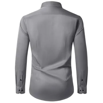 Lusead Men’s Grey Dress Shirts - Silver Long Sleeve, Slim Fit, Wrinkle Free