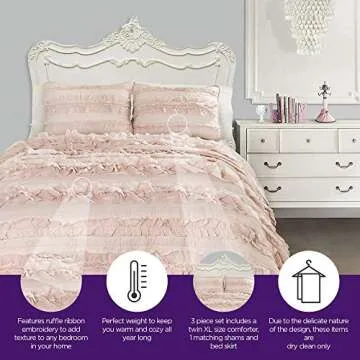 Be captivated by the comfort and aesthetic charm of the Lush Décor Belle Quilt. Customers rave about its luxurious feel and practical function, with many sharing how it elevates their bedroom without breaking the bank. Remember, due to the unique nature of its design, the quilt is recommended for dry cleaning only to maintain its beauty.