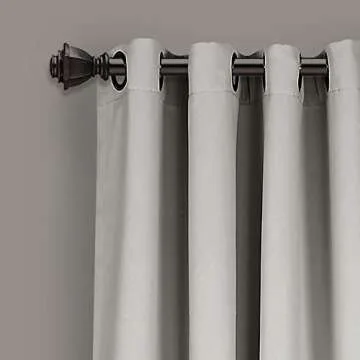 Show more Transform your living space with the Lush Decor Insulated Grommet Blackout Window Curtain Panels. This exquisite pair features a beautiful light gray color that adds a touch of elegance and sophistication to any room, whether it's your living room, bedroom, or dining area. With dimensions of 52 inches wide and an impressive 120 inches long, these extra-long curtains not only provide exceptional coverage but also enhance your interior decor with their classy, modern design. Crafted from premium microfiber, these panels combine style with functionality, ensuring that your home remains both fashionable and comfortable.
