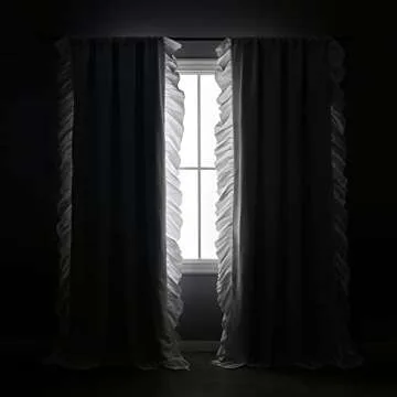 Lush Decor Reyna Ruffle 100% Lined Blackout Window Curtain Panel, Single Panel, 54" W x 84" L, White - Flowy Blackout Curtain - Farmhouse Ruffle Curtains for Bedroom, Living room, or Dining Room
