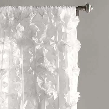 Lush Decor Riley Window Curtain Panel - Charming Handmade Bow Details - Elegant Light Filtering Single Curtain for Living Room, Dining Room, or Bedroom - 54" W x 84" L, White