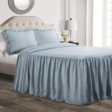 Lush Decor Ruffle Skirt Bedspread Set - Luxurious Farmhouse Bedding in Lake Blue