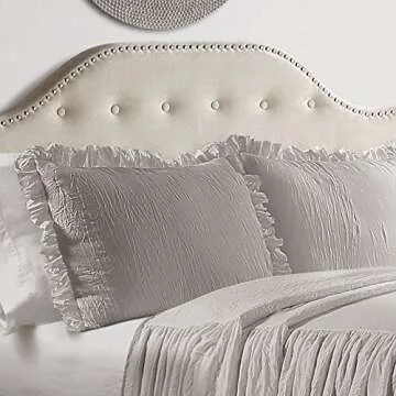 Lush Decor Ruffle Skirt Bedspread Set - 3 Piece Luxurious Farmhouse Bedding Set - Elegant, Charming Ruffle Detail - Timeless Style & Classic Design - Soft and Lightweight - Queen, Gray