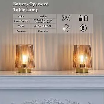 Show more Discover the enchanting beauty of the LUSHARBOR Battery Operated Lamp, a decorative glass table lamp designed to illuminate your living spaces with a blend of elegance and practicality. Crafted from high-quality glass, this cordless lamp offers a stunning modern aesthetic that elegantly complements any décor style. Perfectly suited for various settings such as beside tables, entryways, or cozy reading nooks, this lamp bathes your area in a warm, inviting glow. Elevate your ambiance whether it's a romantic dinner, a casual gathering, or a serene night at home.