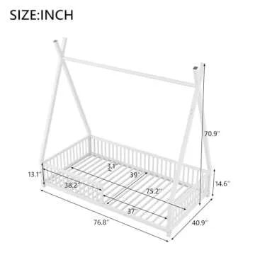 Why You Will Love This Product:Every parent wants their child to sleep safely and independently, and the LUSPAZ Twin Size Metal House Floor Bed radiates both love and safety. It’s not just a bed; it’s a sanctuary where your child can dream, play, and grow. This bed prizes fun decor without compromising safety, ensuring that sleep is not only restful but filled with dreams of adventure and independence. Give your child the gift of a secure and stylish sleeping space—because every good night’s sleep starts with safety and comfort.