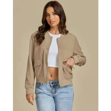 Show more Introducing the Luvamia Bomber Jacket, a fashion-forward piece designed to enhance your spring and fall wardrobe effortlessly. This women’s jacket features a full lining that ensures comfort and style, making it the perfect outerwear for transition seasons. Crafted with versatility in mind, it seamlessly pairs with a variety of outfits—be it jeans, casual trousers, or layered over simple shirts. The chic khaki color adds a touch of elegance while keeping your look relaxed and modern, embodying the essence of women’s fashion in 2024.