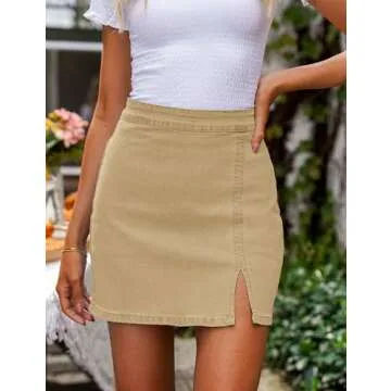 luvamia Jean Skirt for Women with Slit High Wasited Bodycon Stretch Pencil Mini Short Denim Skirts High Waisted Skirts for Women Women Fall Clothes Light Khaki Size Medium Size 8 Size 10
