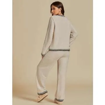Show moreIndulge in the ultimate comfort with the luvmia women's fashion plus size lounge sets, designed specifically for chic loungewear enthusiasts. This delightful set features a full-length sleeve crewneck top paired with stylish wide-legged pants, making it your go-to outfit for leisurely days at home or casual outings with friends. Crafted from soft fuzzy fabric, it offers warmth and coziness, ensuring that no matter where your day takes you, you’ll always feel enveloped in luxury. The trendy contrast trim not only adds an elegant touch but elevates this set from mere loungewear to a fashionable statement suitable for the modern woman.