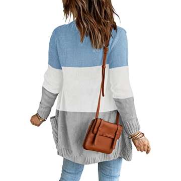 Introducing the **luvamia Women's Chunky Knit Cardigan**, a stylish and versatile addition to any woman's wardrobe. This open front cardigan is designed with both comfort and trend in mind, featuring a contemporary colorblock design in soothing blue and white. Its soft, chunky knit material wraps you in warmth and coziness, making it an ideal choice for chilly autumn and winter days. Whether you're at home or out on the town, this cardigan is the perfect layering piece to complete your look.