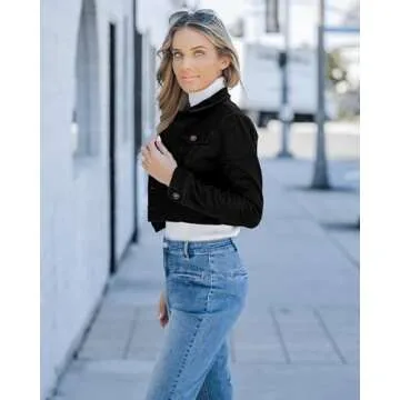 Luvamia Women's Fashion Long Sleeve Cropped Denim Jacket in Black