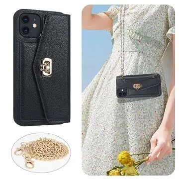 LUVI Compatible with iPhone 13 Case with Card Holder Wallet for Women with Crossbody Neck Strap Lanyard Purse Handbag Shoulder Strap PU Leather Luxury Fashion 3D Crocodile Snake Skin Case Black