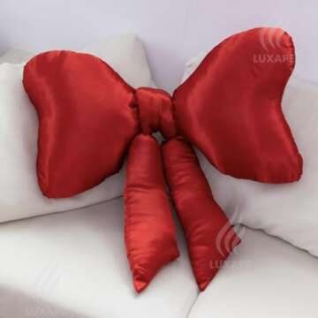 Luxape Bow Pillow - Big Bow Throw Pillow - Bow Shaped Pillow - Silky Satin - Coquette Decor - Bow Room Decor - Pink Bow Pillow - Bow Nursery Decor - red Room Decor