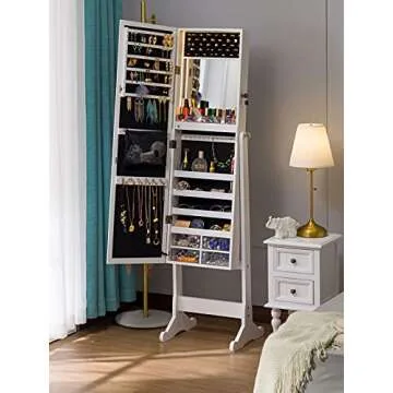 While other jewelry cabinets may offer storage, few can provide the level of protection and style that the LUXFURNI delivers. Unlike standard models lacking built-in lighting, our armoire features integrated LED lights that enhance the user experience. The quality of the velvet lining is superior, ensuring a protective layer that many competitors overlook. Furthermore, the customizable mirror tilt provides an edge over similar products, allowing for personalization that truly meets your needs.