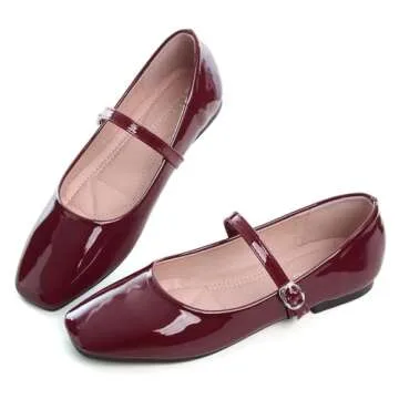 LUXINYU Mary Jane Flat Shoes for Women Patent Leather Square Toe Adjustable Buckle Strap Ballet Dance Shoes,Red 5.5