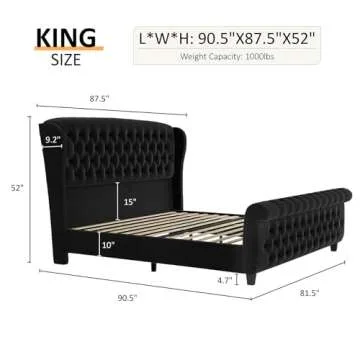 When compared to other bed frames in its class, the LUXOAK King Size Platform Bed Frame excels in quality and design. Many competitors offer similar aesthetic features, but none match the level of craftsmanship with handmade details and premium velvet upholstery. Moreover, its thoughtful design eliminates the need for a box spring while boasting a maximum capacity of 900 lbs, standing out as a durable, stylish choice for any bedroom. This formidable structure is complemented by an easy assembly process, allowing you to enjoy your new bed with ease and efficiency.