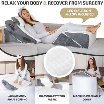 Luxone 5pcs Orthopedic Bed Wedge Pillow Set w/Leg Elevation Pillow - Perfect Adjustable Memory Foam Pillows for After Surgery Recovery, Back Support, Pain Relief, Acid Reflux, Sleeping & GERD