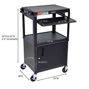 Why You will Love This Product? Experience peace of mind knowing all your AV equipment is securely stored while enjoying the convenience of an easily maneuverable cart. This product streamlines your workflow, allowing you to focus on what truly matters – delivering a flawless presentation or efficiently coordinating work tasks. The adjustable features cater to different user needs, while the free-rolling casters ensure you won't be tethered to one location. Overall, the LUXOR AVJ42KBC will elevate your organizational efforts and enhance your productivity.