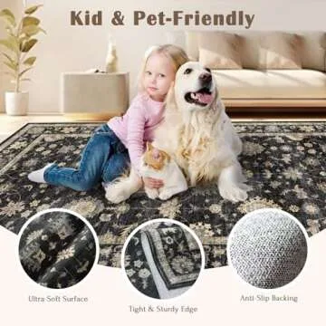 LUXRUG 3x5 Washable Area Rug - Small Entryway Rug Non-Slip Charcoal Black Vintage Traditional Floral Kitchen Rugs Low Pile Boho Carpet Throw Rugs for Living Room Bedroom Bathroom Entrance Dorm Office