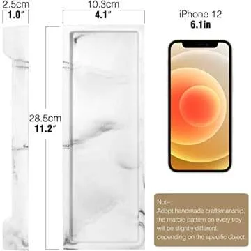 Show moreIntroducing the Luxspire Bathroom Vanity Tray, a stunning and functional addition to your bathroom or kitchen that effortlessly combines style with organization. Measuring 11.2" x 4" x 1.2", this versatile tray is the perfect size for soap dispensers, skincare products, perfumes, and even guest essentials. Crafted from high-quality resin, each tray boasts a unique marble pattern, making your purchase truly one-of-a-kind. Its elegant gravel white finish adds a touch of sophistication, ensuring that it complements any décor while keeping your countertop clutter-free.
