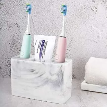 Luxspire Electric Toothbrush Holder, 3 Slots Large Marble Toothbrush Toothpaste Stand, Resin Storage for Bathroom Accessories Vanity Counter Sink Organizer Caddy Marble Style- Ink White