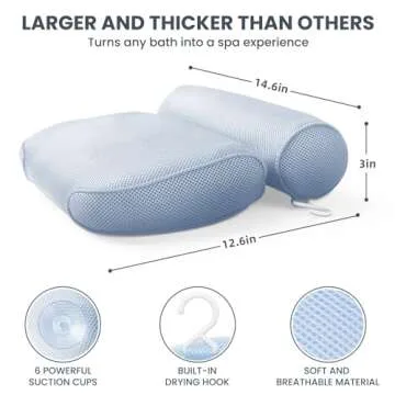 LuxStep Bath Pillow - Soft, Extra Thick Bathtub Pillow with 6 Suction Cups, 14.6x12.6 Inch, Fits Any Tub