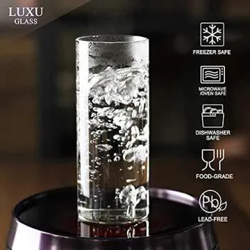 LUXU Drinking Glasses 12 oz, Thin Highball Glasses Set of 4,Elegant Bar Glassware For Water, Juice, Beer, Drinks, and Cocktails and Mixed Drinks,Lead-Free Pint Glasses,Glass Drink Tumblers