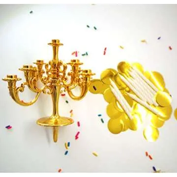 Luxury Candelabra Birthday Candles, Special Cake Candles, Party and Event Unique Candle, Cake Topper with 9 Candles, Cake Candle Holders, Cake Decorations, Romantic Propose Candles (Metallic Gold)
