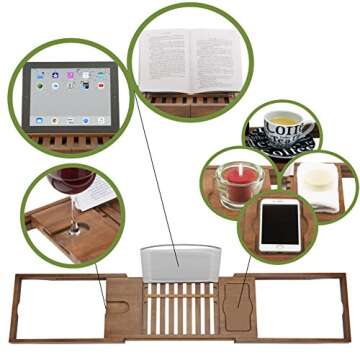 Resistant Bamboo Wood, this premium bath caddy boasts a