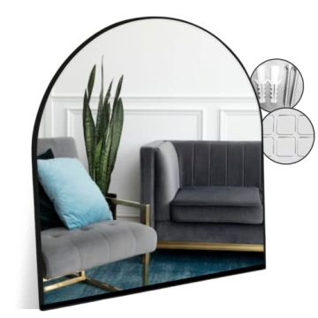 Show more Transform any room in your home with the exquisite Luxury Premium Arched Mirror Decor for Wall. This stunning piece blends modern design with functionality, featuring a minimalist aesthetic that easily complements various decor styles. Measuring an impressive 33 x 31 inches, this large arch mirror is framed in chic black, adding a touch of elegance while amplifying natural light. Its unique rounded edges create an inviting arch shape, making it not just a mirror, but a statement piece that elevates your interior space.