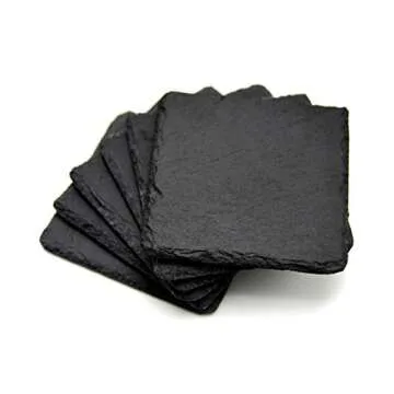 Show moreTransform your beverage experience with our Luxury Slate Stone Coasters, an exquisite set designed for those who appreciate both functionality and elegance. Made from high-quality natural rock, these stunning black stone coasters are not just practical accessories; they are a statement of style in any setting. Each square coaster, measuring approximately 4x4 inches (10x10cm) and featuring a thickness of 0.16-0.31 inches (0.4-0.8cm), provides a stable base for your favorite drinks.